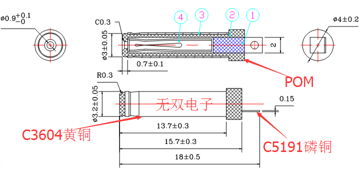 ?材 ? ?質(zhì):外管:H65黃銅管,端子:C5191磷青銅,膠料:臺(tái)灣寶理POM料