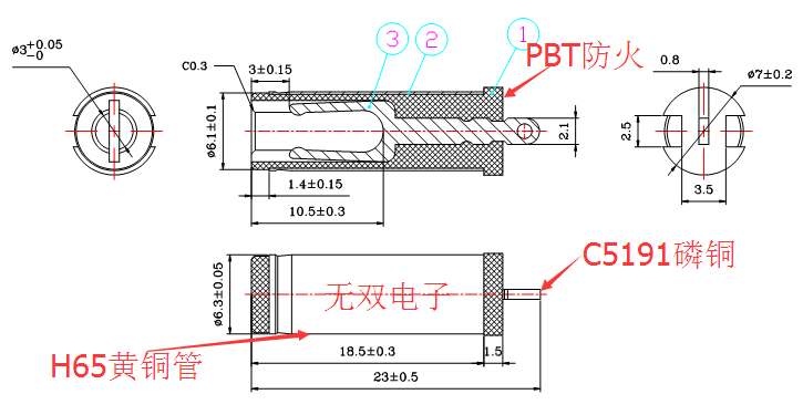 材 質(zhì):外管:H65黃銅管,端子:C5191磷青銅,膠料:PBT防火膠料