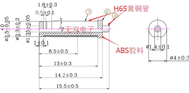 材 質(zhì):外管:H65黃銅,嗽叭嘴:H65黃銅,膠料:奇美ABS-757環(huán)保料