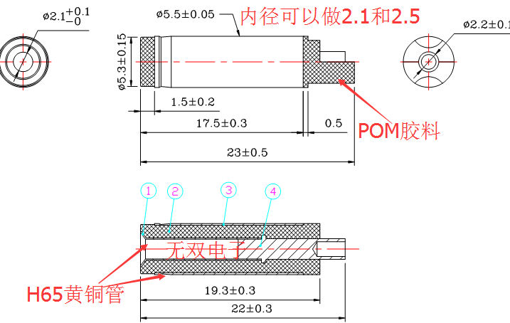 產(chǎn)品描述:OD=5.5mm,ID=2.1/2.5mm,L=22.5mm;黑膠及其它顏色,鍍層為鍍鎳或鍍金.