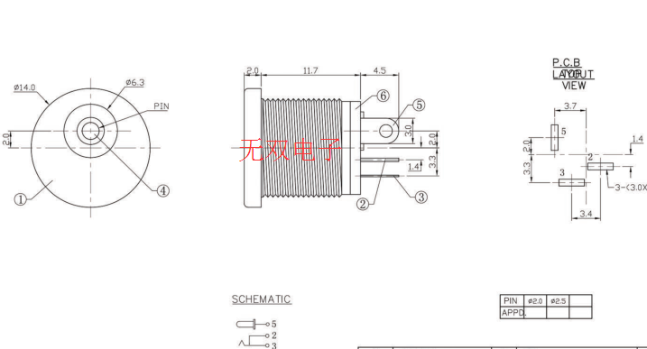 產(chǎn)品描述:內(nèi)徑6.3,針大小2.0/2.5,可以對(duì)插5.5*2.1,5.5*2.5公頭