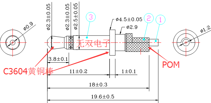 產(chǎn)品描述:2.5*19.6單聲道4.5盤插針,黑膠/白膠及其它顏色,鍍層為鎳或金.