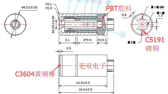 材 質(zhì):外管C3604黃銅,彈片C5191磷銅,膠料:PBT環(huán)保料