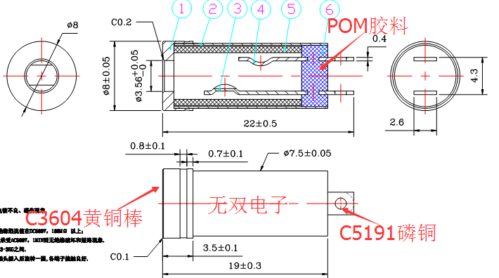 材 質(zhì):外管C3604黃銅,彈片C5191磷銅,膠料:PBT環(huán)保料