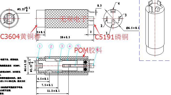 材 質(zhì):外管C3604黃銅,彈片C5191磷銅,膠料:PBT環(huán)保料