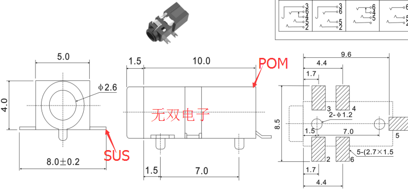 產(chǎn)品描述:2.5耳機母座,鍍層為鎳或金.