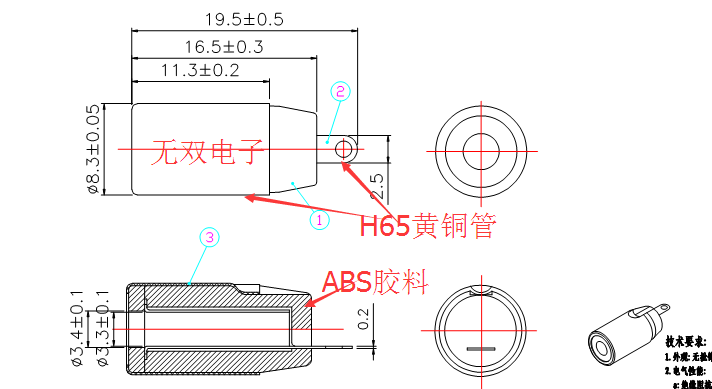材 質(zhì):外管H65黃銅,膠料:ABS環(huán)保料