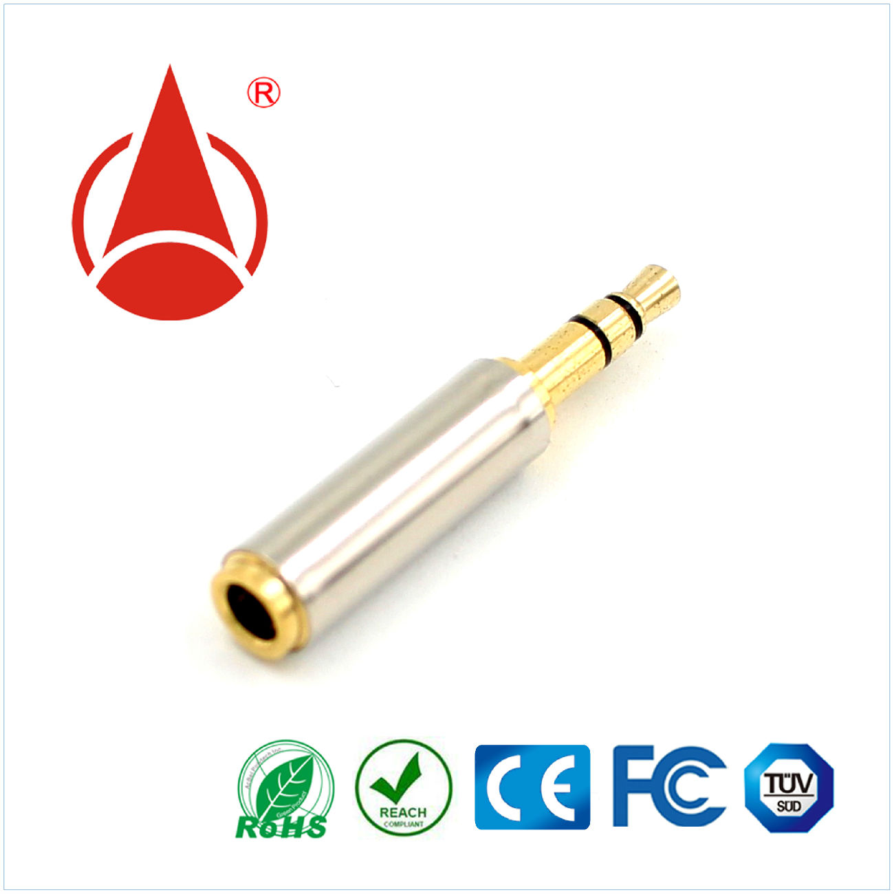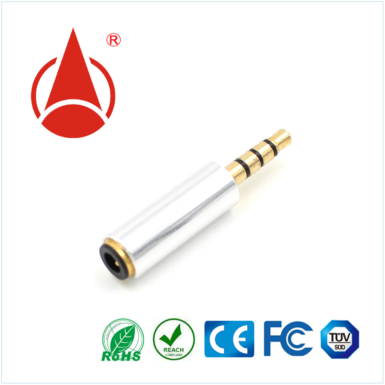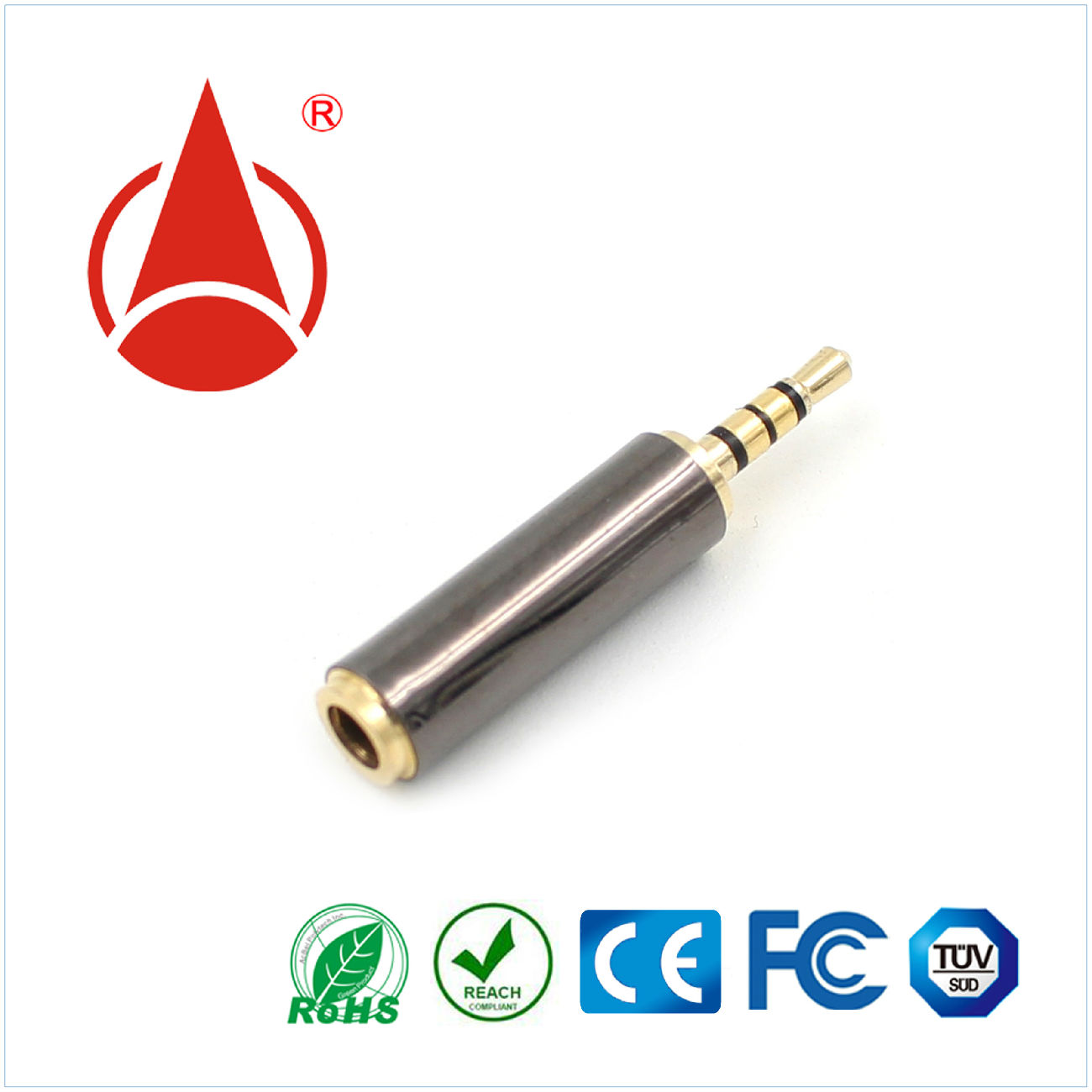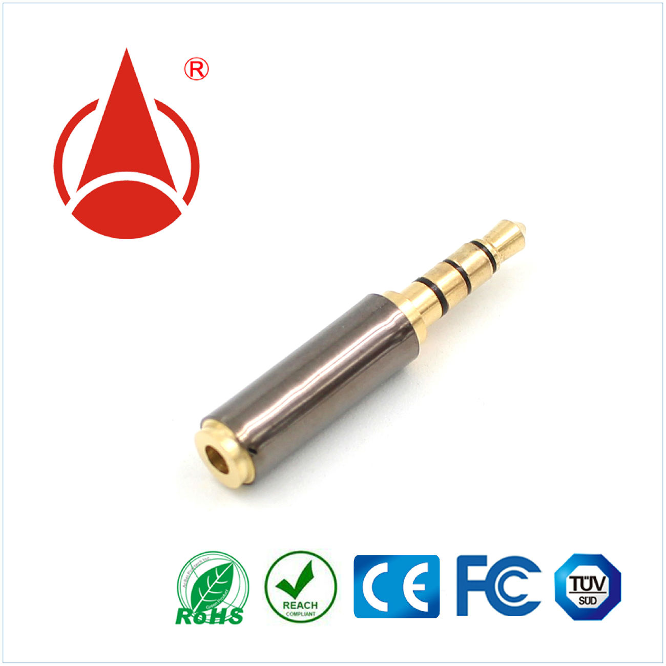 產(chǎn)品描述:3.5四極公頭轉(zhuǎn)3.5四極母座,;黑膠其它顏色,鍍層為鍍鎳.