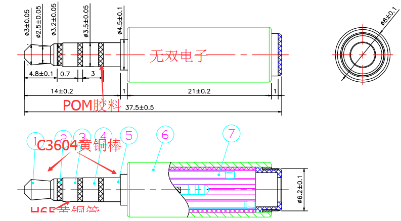 材 質(zhì):外管:H65黃銅管,端子:C5191磷青銅,膠料:PBT防火膠料