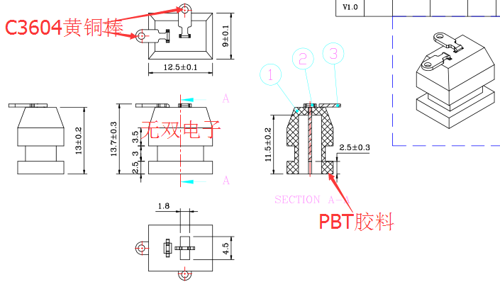 材 質(zhì):彈片:H65黃銅,膠料:PBT+15%Pb