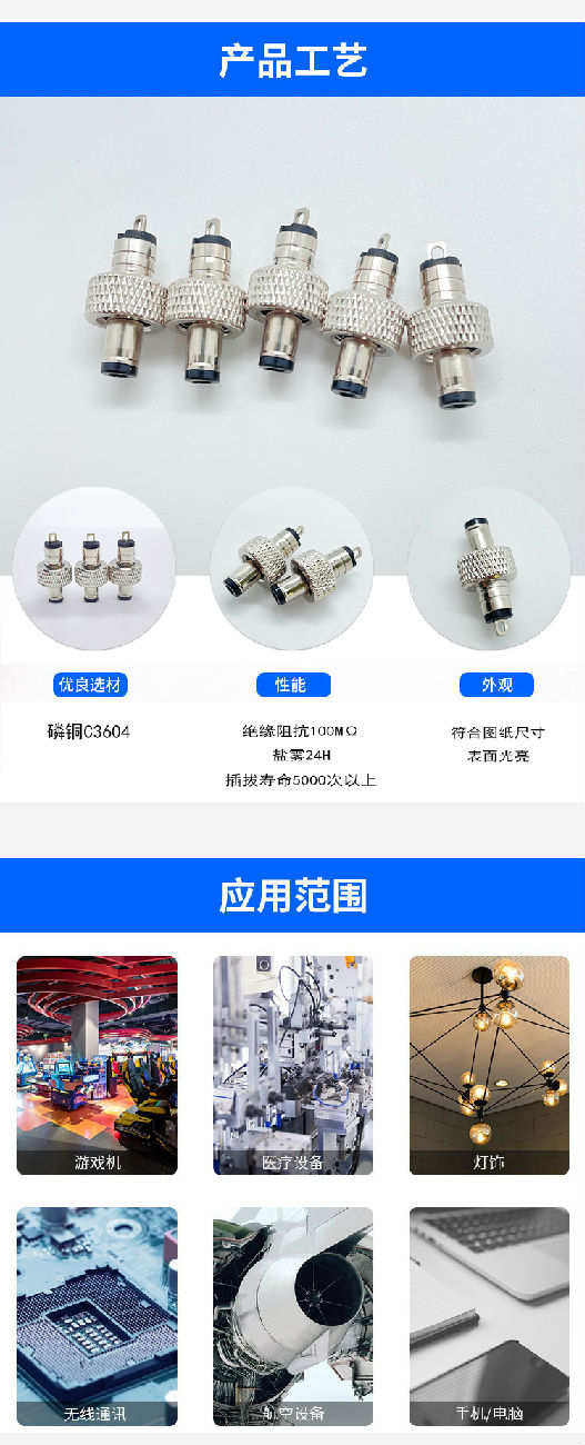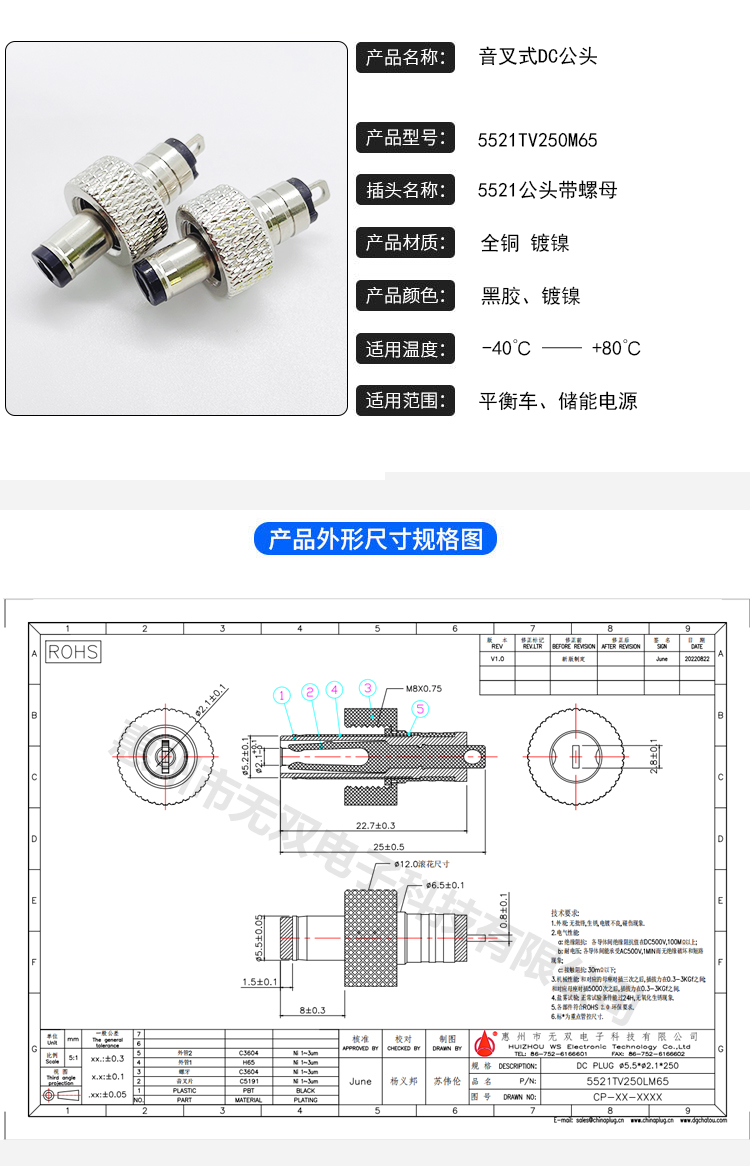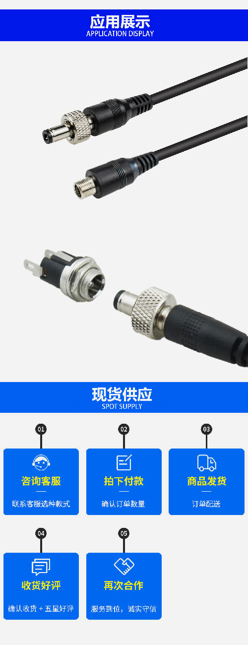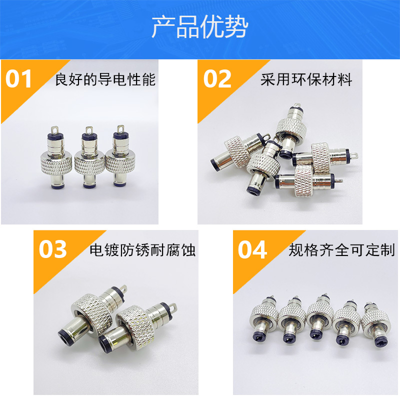 DC5521公頭帶螺母5.5*2.1儲能插頭太陽能防脫落連接頭