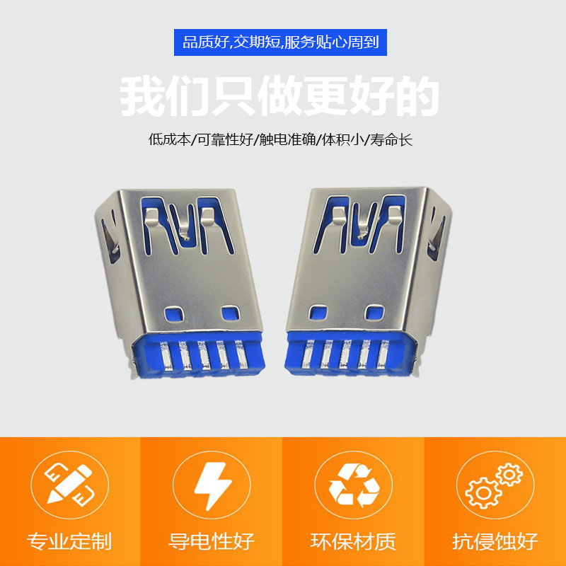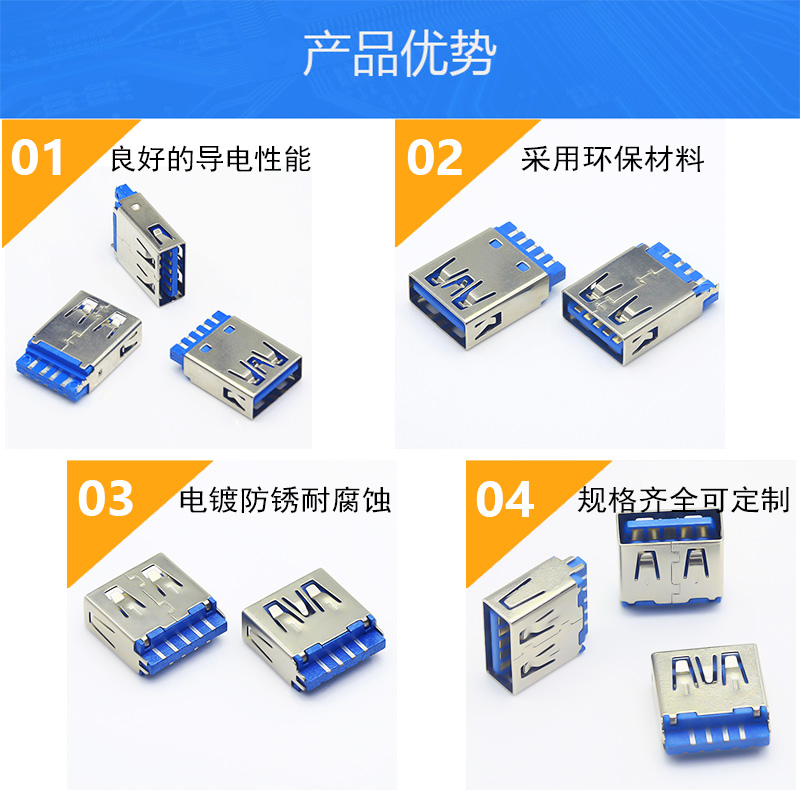USB A3.0母座藍膠